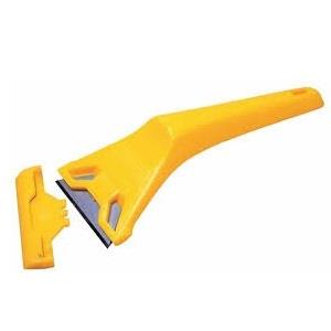 The Stanley 5930 window scraper uses a standard (011921) trimming knife blade to scrape excess paint from window panes. It has a comfortable plastic handle with detachable blade guard. With the guard fitted it makes a good windscreen ice scraper.