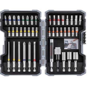 The Bosch 2607017164 43-piece screwdriver bit and nutsetter set is for universal screwdriving with screwdrivers and drill drivers. It comes in a robust case for safe storage and easy transportation.