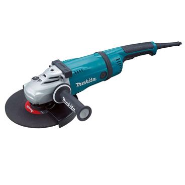 GA9040S Makita Angle Grinder 240v comes with a low vibration rotating rear handle, vibration absorbing side grip increasing comfortable safe work, tool-less wheel cover for quick adjustment and large trigger switch. Other features include double insulation, 2400w powerful industrial motor and a no load speed of 2400rpm.
