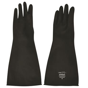 POLYCO SIZE 10 44CM CHEMPROTEC MW BLACK RUBBER GAUNTLETS
