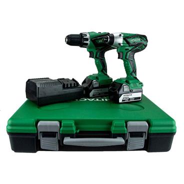 The Hitachi KC18DGL consists of a DV18DGL Combi Drill and the WH18DGL Impact Driver for ultimate power in a lightweight design. Powered by Lithium-Ion batteries that deliver steady, fade-free power throughout the battery's charge giving you an overall longer battery life. The Hitachi DV18DGL is a powerful 18v combi drill with an ergonomic slimline soft grip design, featuring an electric brake and spindle lock. Suitable for a variety of applications including drilling brick and concrete block, driving and removing machine screws, wood screws, tapping screws, drilling various metals and drilling various woods. The Hitachi WH18DGL is a compact and powerful impact driver capable of delivering 145Nm of torque. This impact driver features a fan-cooled motor, all-metal gearing and a hex tool holder.