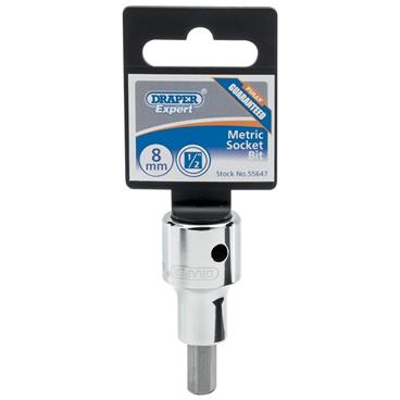 Expert Quality, socket with insert bit. Socket manufactured from chrome vanadium steel hardened, tempered and chrome plated. The bit is made from S2 silicon steel hardened and tempered with sand blast finish. Overall length including socket 55mm.