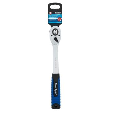 The Blue Spot Tools 1/2" 72 Tooth Soft Grip Ratchet is manufactured from heat treated carbon steel, with a chrome vanadium ratchet head for increased durability. Features a soft grip handle for increased comfort. The 72 teeth provide 5° ratcheting increments making it ideal for use in tight spaces.